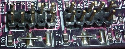 因为每个USB接口能够向外设提供+5V500MA的电流,当我们在连接板载USB接口时,一定要严格按照主板的使用说明书进行安装。绝对不能出错,否则将烧毁主板或者外设。相信有不少朋友在连接前置USB插线时也发生过类似的“冒烟事件”,因此到现在我都怕一不小心把自己的U盘在别人的机器上被烧了,所以在使用U盘拷文件时,一直都使用键盘口附近后置的USB接口,因为主板集成的接口安全,不会有电源接反的可能。
