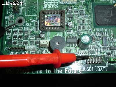 用黑表笔接触主板的地线,如USB接口或键盘接口,固定螺丝位置的边缘,这些位置都是地线。