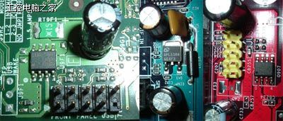 14针接置音频接口:该前置音频接口见于技嘉U8668-D(七喜快乐2004),在其他主板上没有多见,最右边多余的四根针可以用来直接使用跳线帽来短接,使前后置音频接口同时起作用。否则后置接口将受前置接口的控制,当前置耳麦接口中插入话筒或耳机时,会自动切断后置接口的输入。