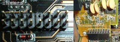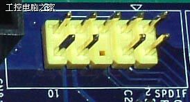 这种接口最常见,实际上占用了十针的位置,只不过有两个针的位置是空着的,如精英的P4VXMS(REV:1.0)主板等。该主板还提供了标准的九针接法,这种作是为了方便DIY在组装电脑时连接容易。