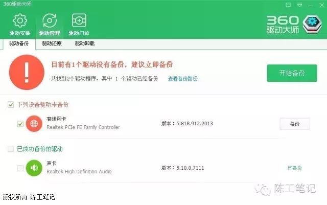 3、最后选择“驱动管理”,然后找到需要备份的硬件,然后选择“备份”即可。点击“查看备份路径”即可找到已备份好的驱动。